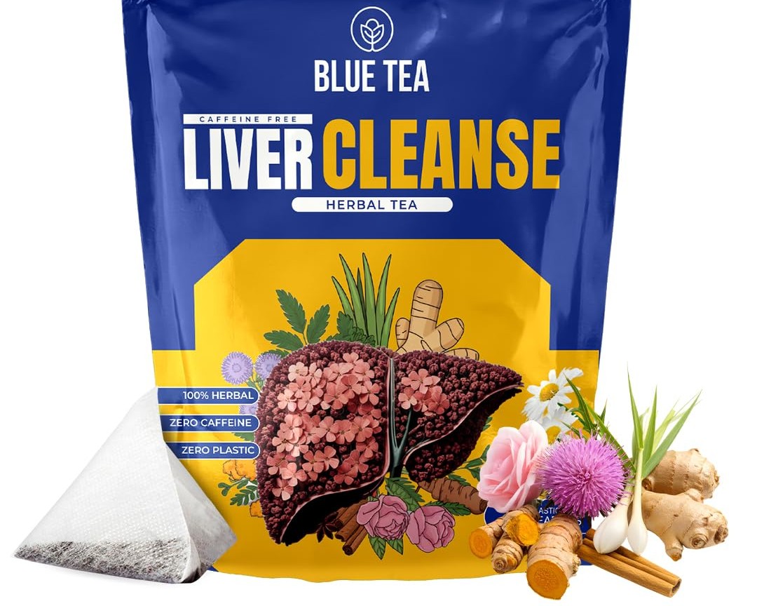 BLUE TEA - Liver Cleanse Tea - 30 Tea Bags - Plant Based | Helps with Fatty Liver Detox | Improves Liver Health | Milk Thistle, Manjistha, Haritaki, Pippali | Caffeine Free - Herbal Tea | Ziplock Pack