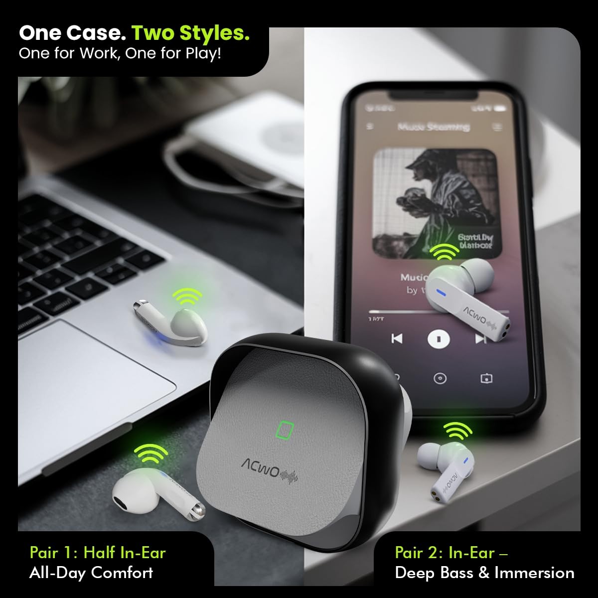 ACwO Dwots Fire India's First in Ear + Half-in-Earbuds in One Case, 3+3 EQ Modes, Wireless Charging Enabled, AI-ENC with Quad Mic - Moon White 50+ bought in past month